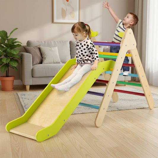 2-in-1 Wooden Triangle Climber Set : Climbing Ladder + Slide Board