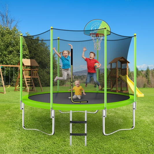 AeroBounce™ Premium Outdoor Trampoline with Safety Net, Ladder & Basketball Hoop