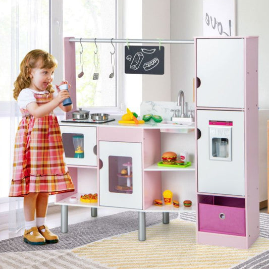 2 in 1 Chef Corner Restaurant, Kids Role Play Pretend Kitchen and Restaurant with Lights, Sounds and 82 Accessories